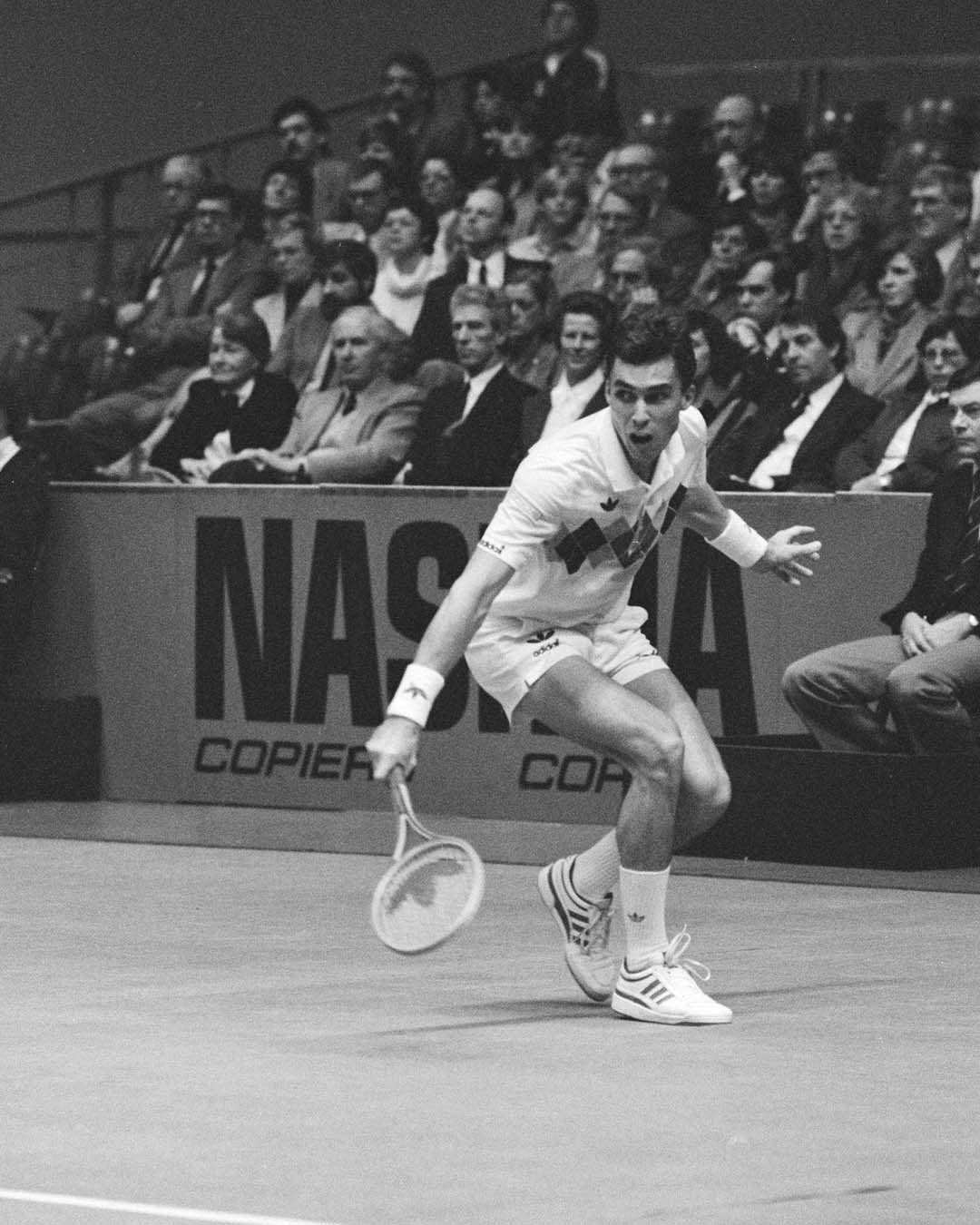 Ivan Lendl plays Jimmy Connors during the Rotterdam final in '84, before the match was suspended. // Alamy