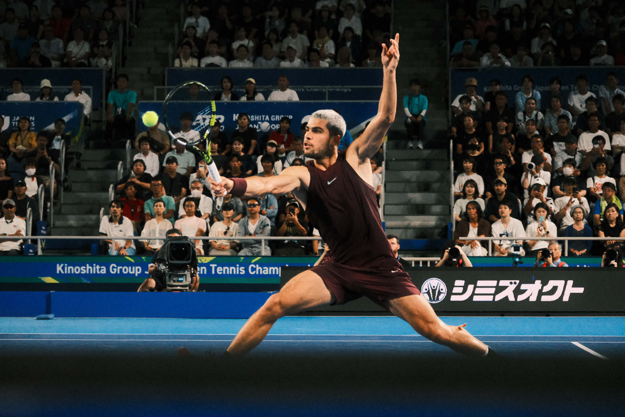 Moody vibes under Tokyo skies as Carlos Alcaraz electrifies passionate tennis fans at the Japan Open.